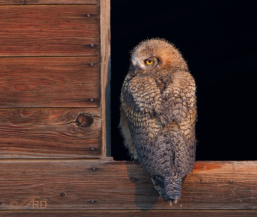 Juvenile Great Horned Owl in early morning light