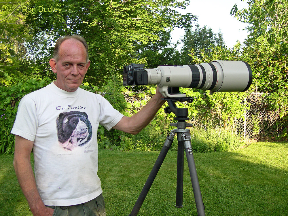 Here I am in my back yard with my brand new toy (June, 2007) and wearing a silly smirk on my face. One of the fingers on my left hand was dripping blood because I’d pinched it in the tripod (also new) and the grubby T-shirt was a gift from one of my students (as you can see I was too fond of it for much too long). At this point I was wondering just what in the hell I’d done! I had a new, expensive and complex piece of equipment that I had no idea how to use to potential.