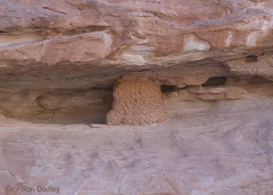 The remnants of an ancient Anasazi granary wedged in a rock alcove along the Fremont River.