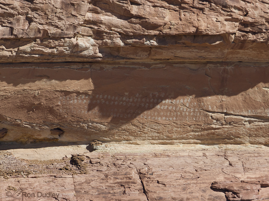 These are ancient Anasazi handprints near Calf Creek. The image was taken across the span of a canyon from about a quarter-mile away so it’s difficult to see much detail. Years ago when I was working for the Utah Museum of Natural History I hiked several times to the base of these prints and I can’t even describe the awe I felt as I looked at them up close.