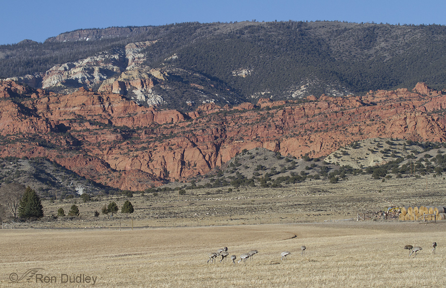 Though we did a lot of exploring on this trip a significant portion of our time was spent right here, photographing migrating Sandhill Cranes as they foraged in agricultural fields with this spectacular backdrop.