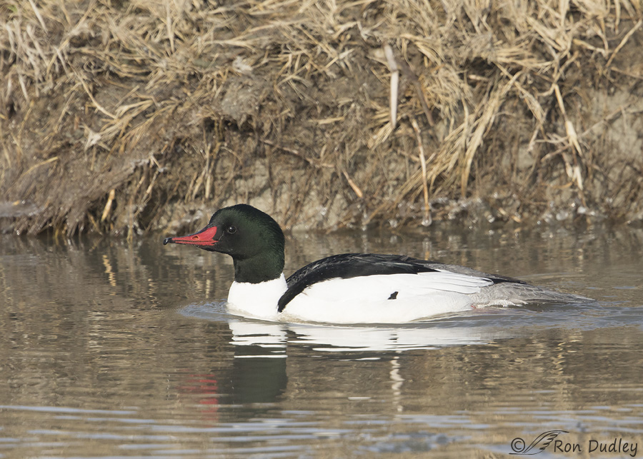 A male Common Merganser at Farmington. I seldom get this close to the males or this much color in their heads.
