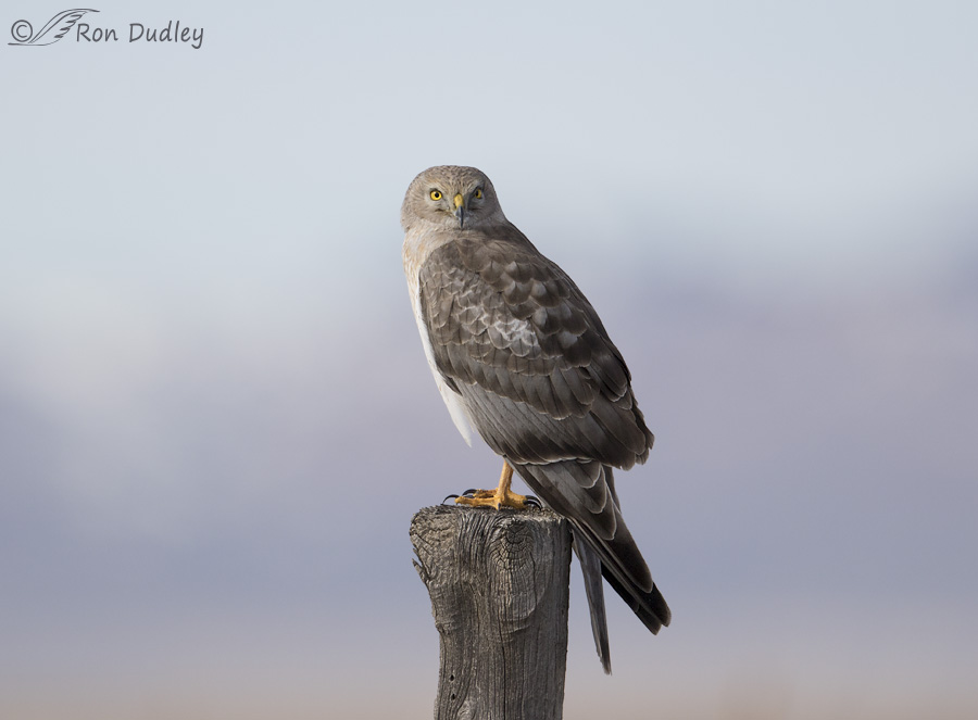 I centered the harrier horizontally for two reasons: 1, the bird was looking directly at me and 2, there’s an ugly sign just barely out of frame to the left. I have several images of the bird looking to my left but couldn’t easily use them because the best composition with him looking that way would have meant including that distracting sign.