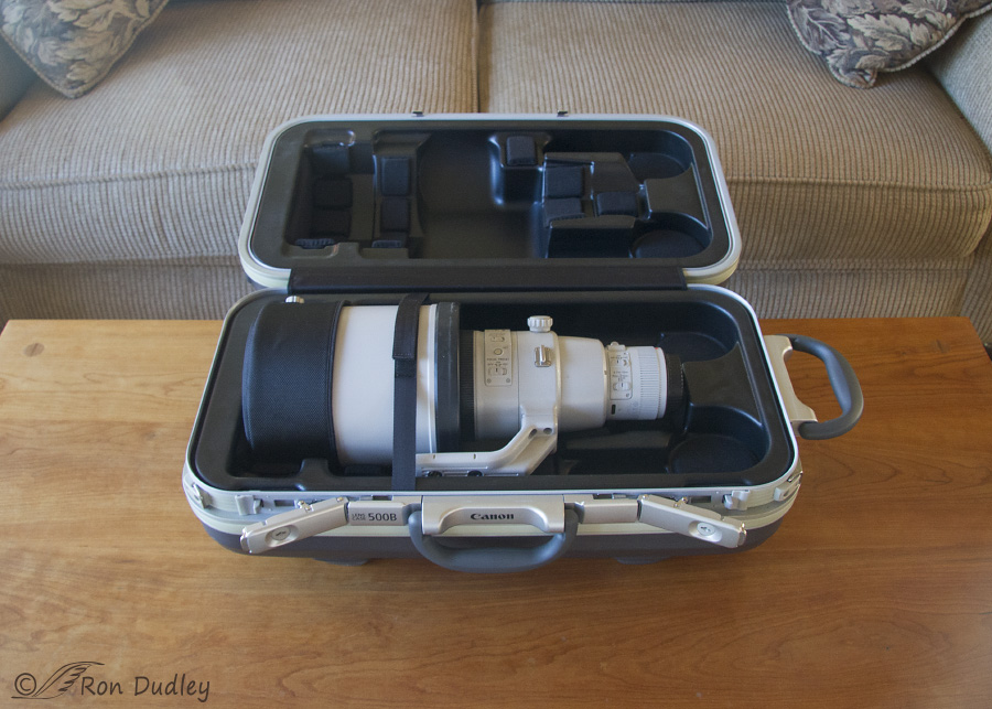 Yup, it’s my 500mm lens (Canon EF 500mm f/4L IS II USM) all packed up in its case and ready to be shipped to the Canon Factory Service Center in Irvine, CA later today.