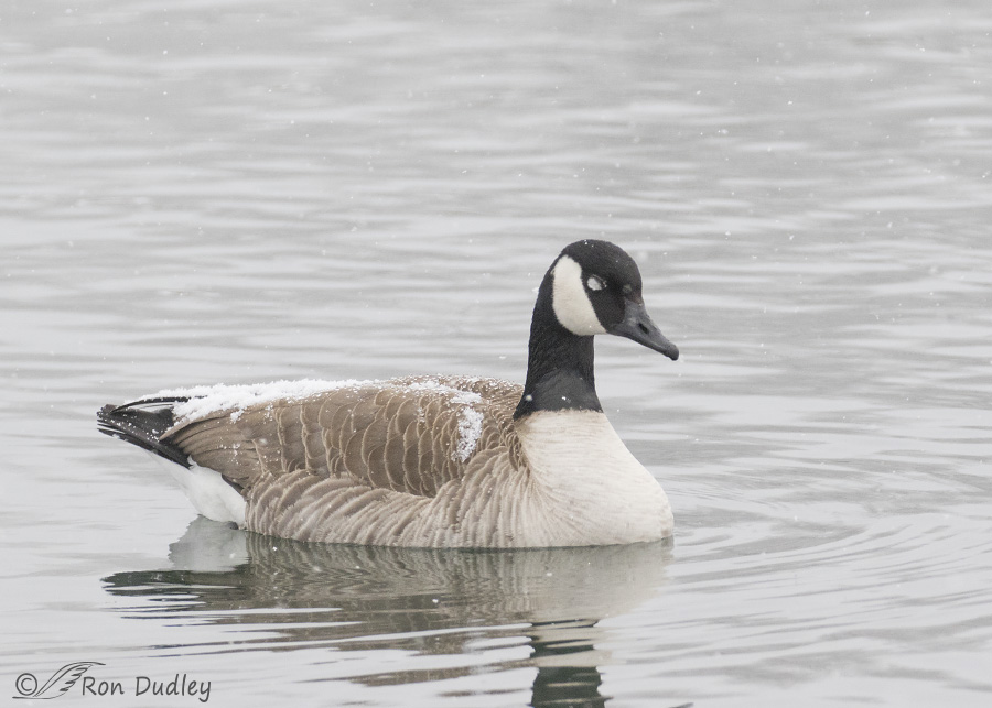 That Canada goose looks absolutely miserable as the snow accumulates on its back. Poor baby! I’m listening right now to a few of its warmer cousins honking away outside.
