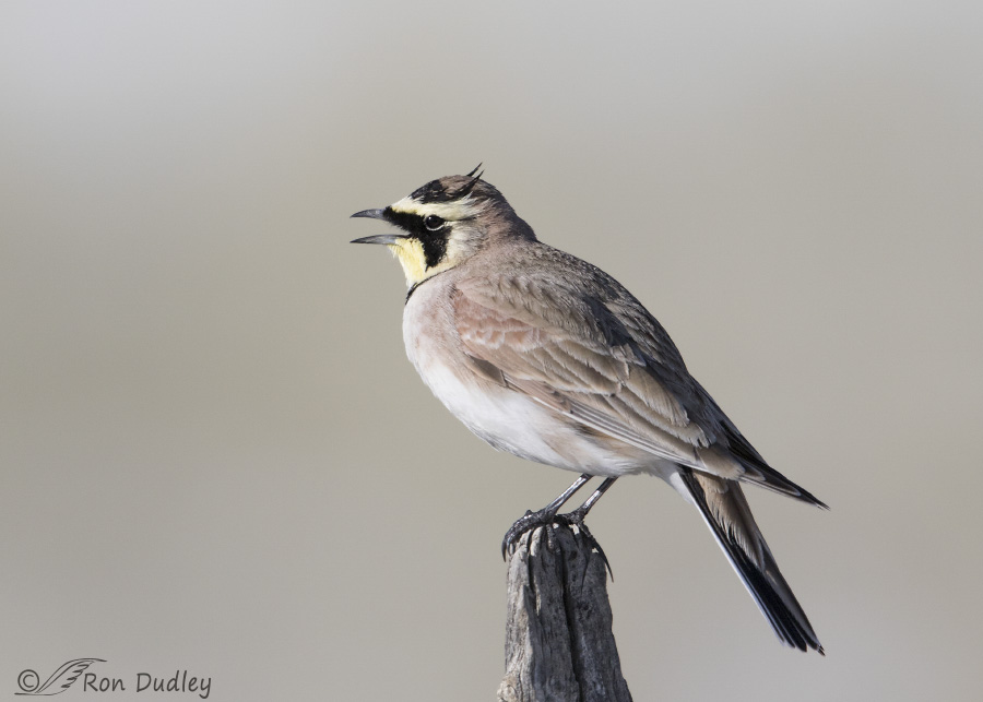 For some unknown reason I seldom have opportunities to photograph Horned Larks anymore. I still see some of them around but there just doesn’t seem to be as many of them as there used to be. So nowadays I usually jump at any chance to photograph them when I often used to pass them up. I like this photo of a male because of the singing pose and the erect “horns”.