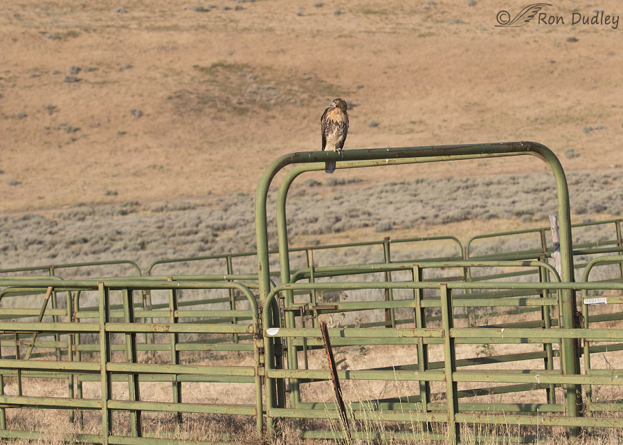 Because of our camping trip I hadn’t been to the area of the original blown-down nest for a while but four days ago I visited again and was delighted to find the lone survivor doing very well. He (or she, I don’t know the sex) was perched on part of a large metal corral but some distance from the original nest site. I can’t tell you how happy I was to see him doing well after the loss of both of his siblings that I’d followed for so long.