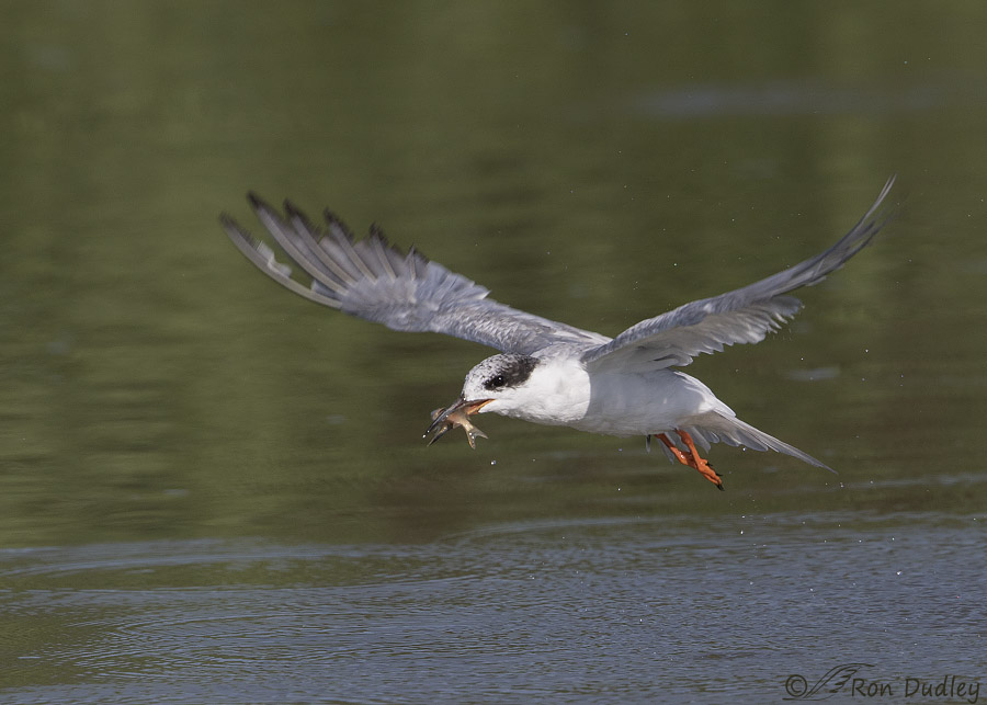 This Forster’s Tern going out of breeding plumage had emerged from the water with a fish less than a second before the image was taken – the tern is still very close to the water surface and there’s water droplets coming off of its body. This might have been a fun photo to have included a full reflection of the bird but it just didn’t happen.