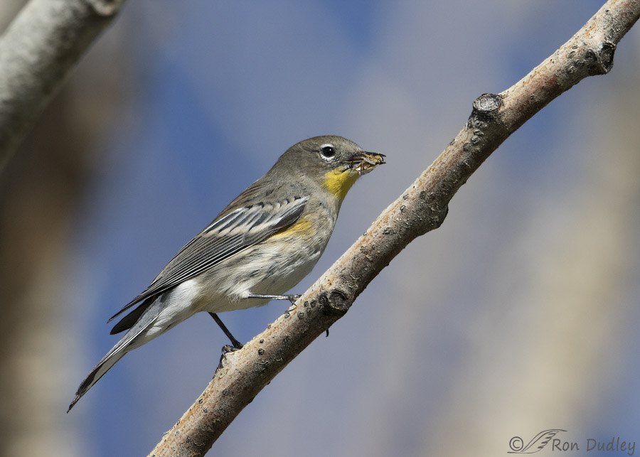 These are three fantastic shots, Ron. I actually like the upper-left branch in shot #2 because it runs mostly parallel to the bird’s back. The two branches frame the bird so nicely and draw my eye back to the yummy morsel in it’s beak. I think the first shot is my fave for today, though.