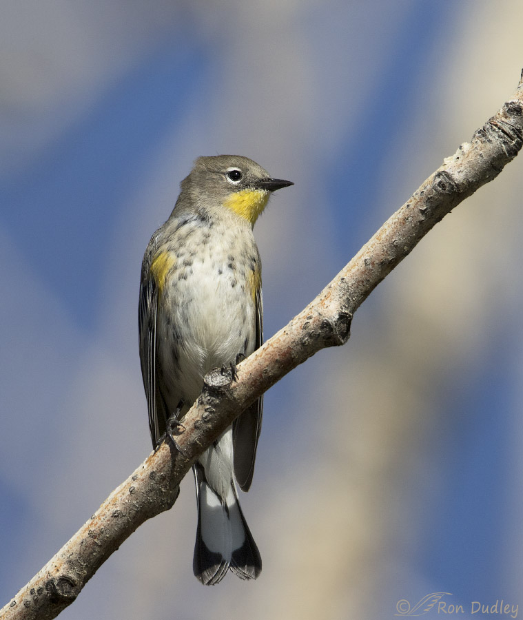 and posed nicely for a portrait I decided to remove the tiny portion of that diagonal branch at upper left that was originally visible. Here the background branches look enough like clouds that they don’t bother me. In fact I’d rather have them there than plain blue sky.