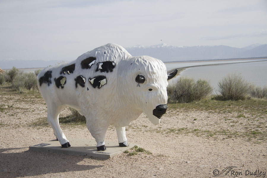 Personally I’ve always thought of these painted bison as being a little garish and incongruous in such a natural setting as Antelope Island but when I asked my ranger friend what kind of feedback they’ve had about them over the years he said that as far as he knows none of it has been negative and they’re “very popular with tourists”. And I suspect he’s right because I rarely drive by them when I don’t see tourists taking photos of each other with the bison. For better or for worse they truly have become icons of the island. I really don’t mind them but with those bright paint jobs they just seem a little… I’ll say it again, incongruous, at least for my tastes.