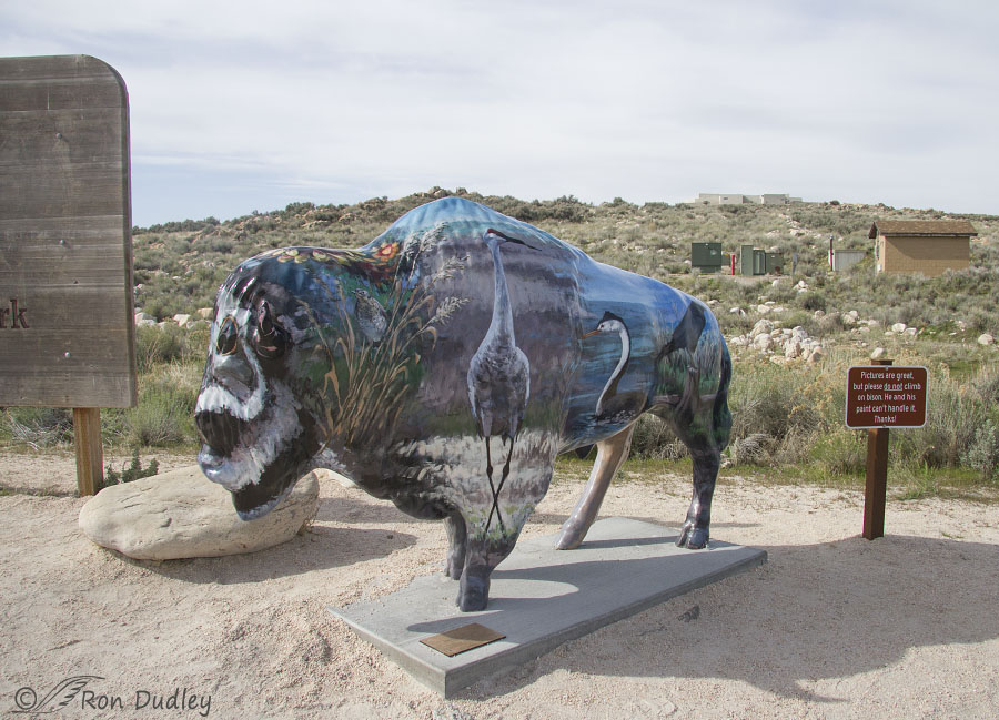 Beautiful sunrise Ron, and my favorite is the first bison with the painted Great Blue Heron, the Grebe, etc. And the violations you showed us are always very irritating to those of us who love nature and the great outdoors. I would never even think of painting my name on a monument or anywhere else for that matter. Glad you exposed them as well as the sleepy camper. We have never been to most of the areas that you use for your excellent photos. Been to SLC on business, and to Park City and Deer Valley skiing back in my younger days, and to Capitol Reef, Bryce, and Zion a couple years back, but never to those areas you so often feature. Keep on exposing those violators and taking those beautiful photos.