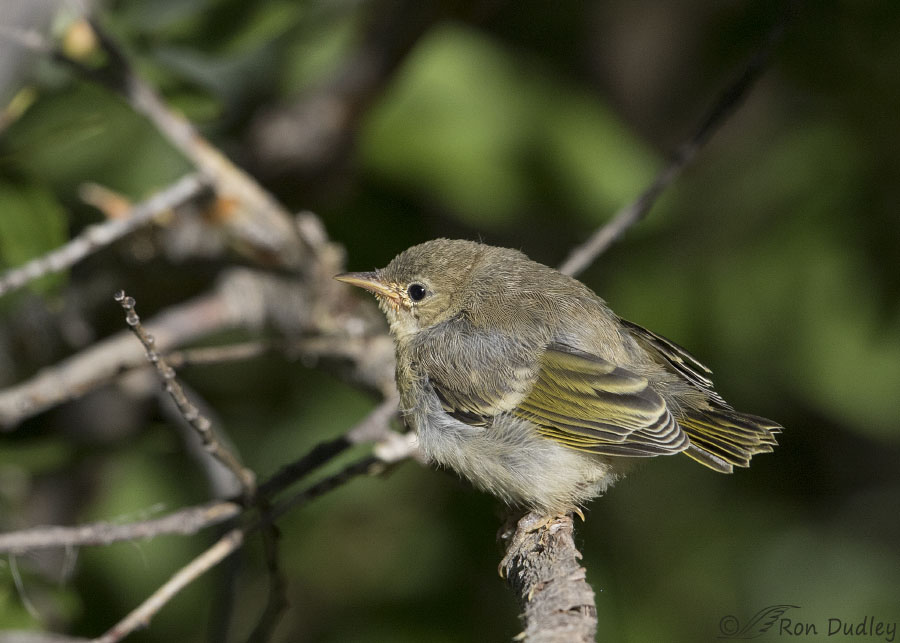 Yesterday morning was both a blast and an exercise in extreme frustration with Yellow Warblers in the Wasatch Mountains. Three young warblers had very recently fledged but they were mostly buried in their tree so I had a very difficult time getting good looks at them. I micro-maneuvered my pickup multiple times in order to get a “tunnel view” of them through the branches and leaves but the breeze was constantly blowing foreground branches in front of the birds, especially when they were being fed by their parents.