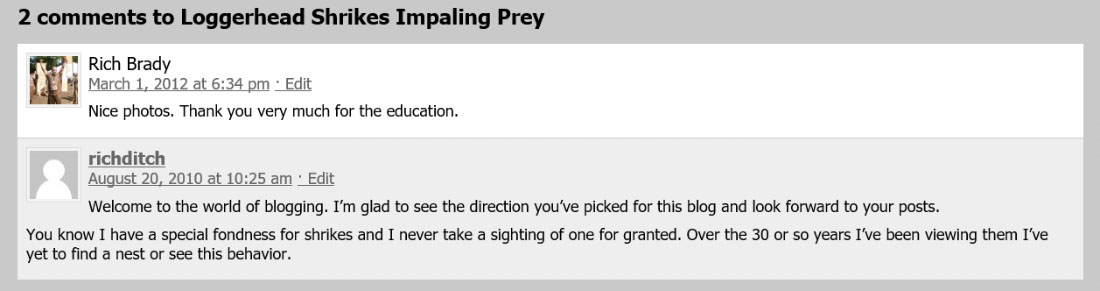 Thanks, Marty. But as far as I’m concerned the only redeeming qualities of that post are the behaviors and the shrikes themselves. My text and organization make me cringe.