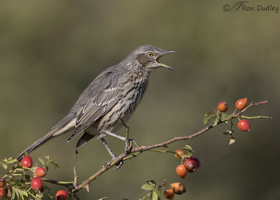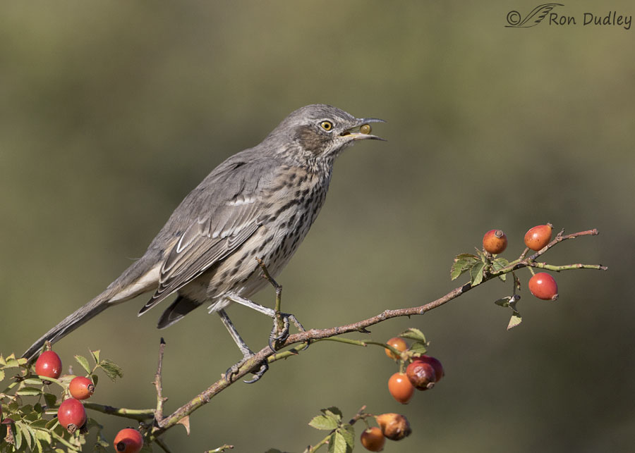 I photographed this Sage Thrasher on wild rose two days ago. Some readers will likely recognize the perch as the same one the Northern Mockingbird had been using in yesterday’s post. The rivalry between those two birds and others for perching rights on the wild rose will likely be the subject of a future post.