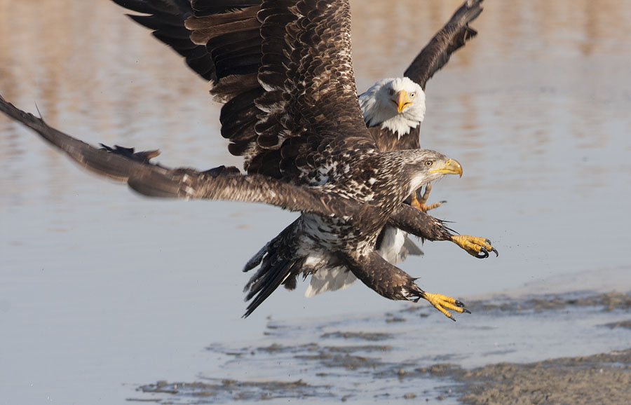 There were several excellent winters with eagles at Farmington after I took up bird photography but 2009 was truly spectacular. Refuge personnel had long used rotenone (a natural plant extract that robs fish of oxygen) to kill damaging and invasive carp on the refuge but in 2009 they did it upstream of the 4-way pond. Dead and dying carp would occasionally wash down into the shallow pond providing a feast for eagles and on clear mornings the light angle on the pond was just about perfect for photography!