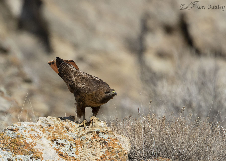 This is the female rufous Red-tailed Hawk I’ve mentioned twice in recent blog posts. Two days ago she perched on this rock while her mate was perched nearby. Neither bird was very close to me so these shots have been cropped moderately.