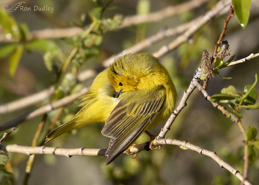 Excellent series Ron. When you watch birds they do spend lots of time pruning and often as you show here they enlist the aid of the sun to remove parasites. During my many years of observing our eagles I have often seen them facing the sun with wings spread wide to allow the sun to help clean up the parasites. Of course they will also do it for warming and drying, but more often I have seen them on warm dry summer days doing it as part of the grooming process. Those Warblers sure are pretty birds. Great series of photos.