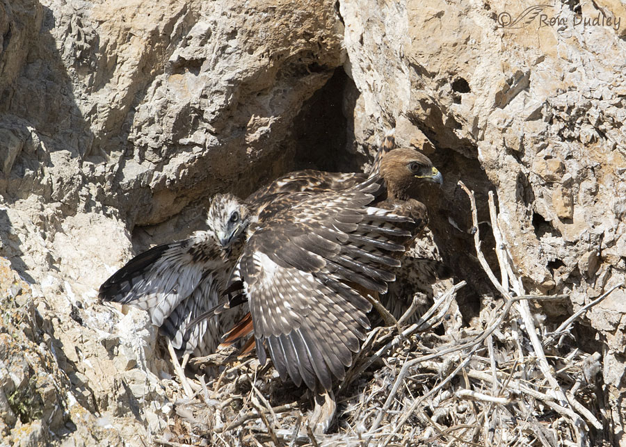 Outstanding documentary Ron. Educational,informative, and entertaining. I imagine these little guys/gals can get very anxious and sometimes scared waiting for a parent to return with food. I think you did a remarkable photography job considering the shadows and the sun reflecting off the rock. I share your respect for the birds and their nest. There are some who would do whatever it takes to get the photos regardless of what distress it might cause the hawks.