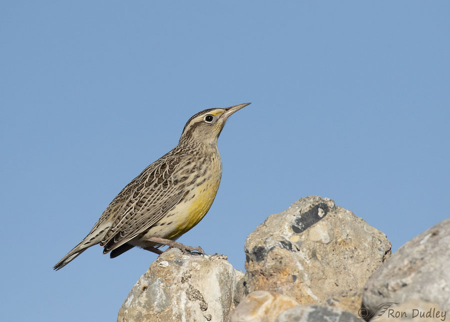 Two days ago while photographing American Pipits on a large pile of rocks this Western Meadowlark landed on top of the pile and no more than 20′ from me. It was a little nervous about me being so close so it didn’t give me any pose variety but it stayed there as it watched me for quite a while. This photo was taken with my smaller zoom lens at only 400mm.