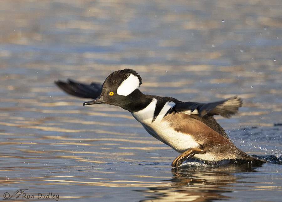 Love those little Hoodies! Thank you for the wonderful shots Ron. I was watching some Mallards on a pond a couple of years ago and one seemed to be scooting off like your little Hoodie and so I watched for awhile and saw that a Muskrat was swimming under water and maybe nudging or nipping the Mallard.