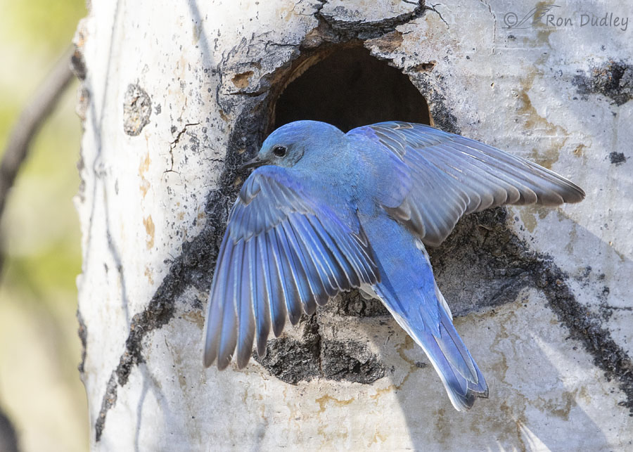 Ron – Envy is just oozing from me. These Mountain Bluebirds are just gorgeous. That photo with the spread wings in front of the cavity is one that I think at least 50% of your followers will want a print of when the Covid scare is over. I have never seen one here, but I believe they are here up in the higher altitudes. Outstanding photos.