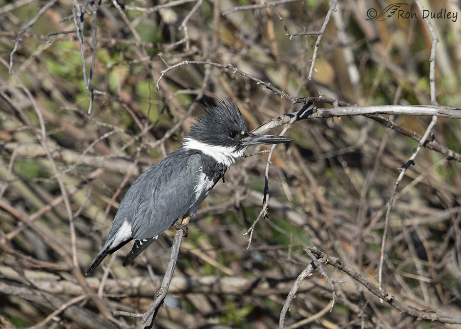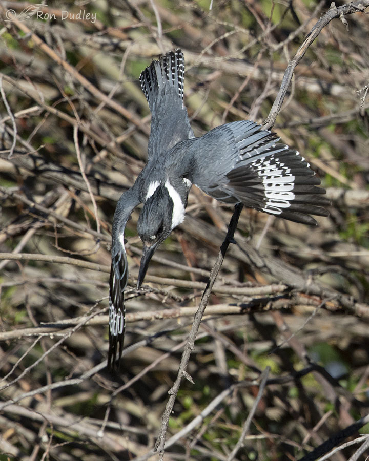 I loved these. My guess is that he’s part of the KWCR (Kingfishers Who Confound Ron.) His task (they make sure members are willing to do whatever it takes) was to pose for you. He had to choose a really jumbled background AND pose in awkward positions.