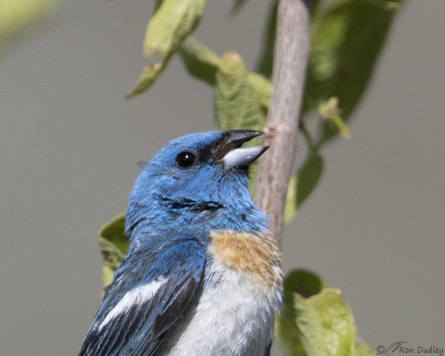 This photo also gives us a good look at the bicolored bill of Lazuli Buntings – the upper mandible is black while the lower mandible is a very light blue, often appearing white. I’ve found that bright lower mandible to be problematic for photography because it often produces annoying specular highlights (very bright light reflections).