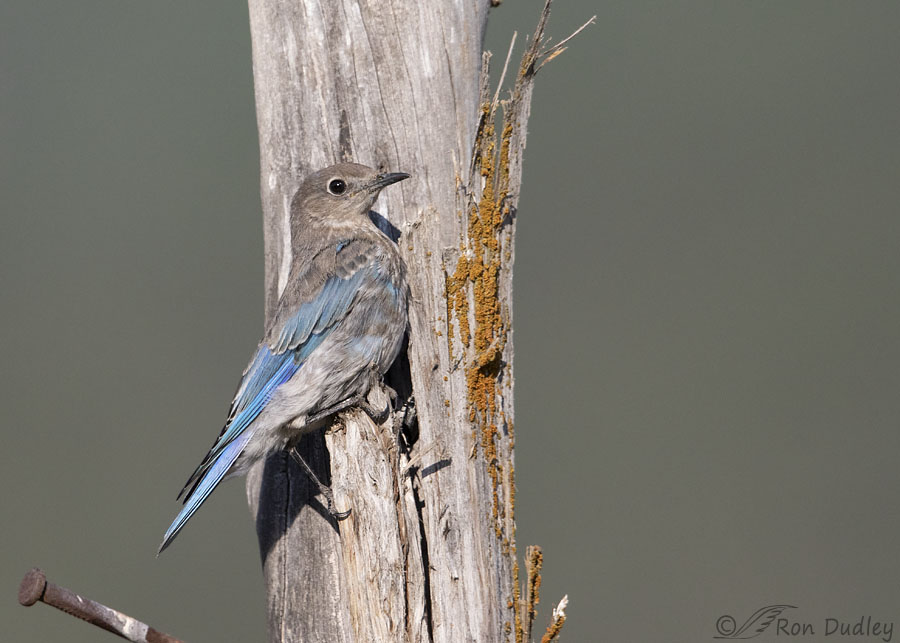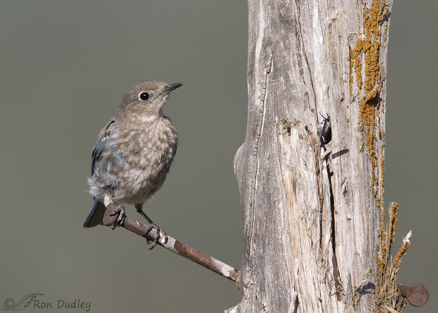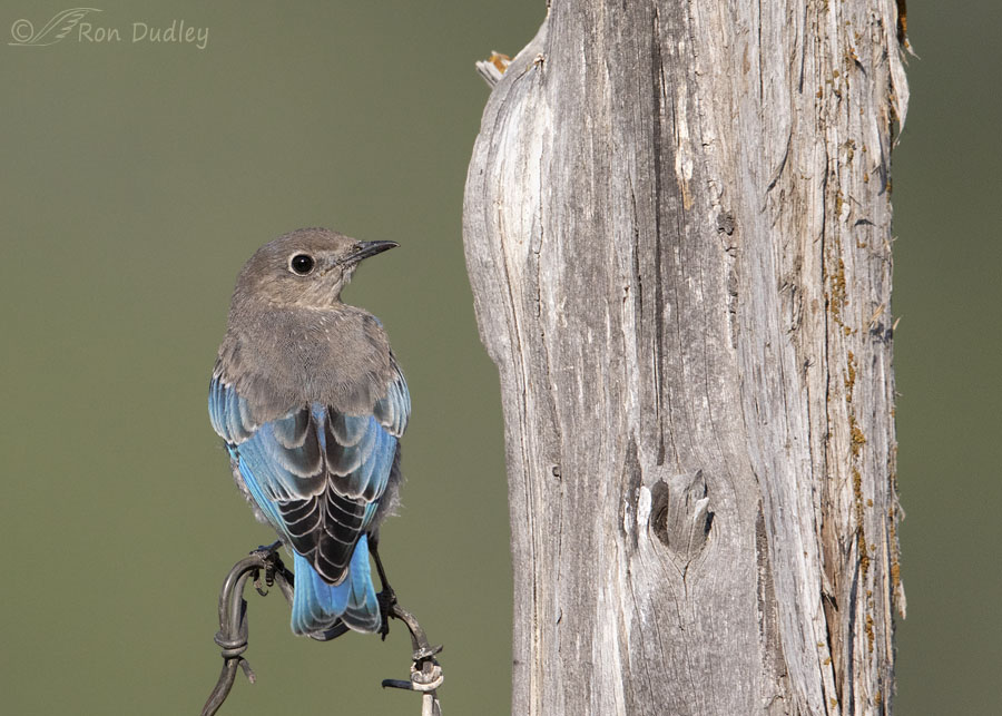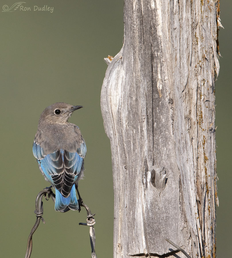 Four days ago I had the privilege of watching this juvenile Mountain Bluebird and one of ‘his’ siblings as they explored this very old and weathered fence post in the Wasatch Mountains. For a while this bird seemed particularly fond of using a loop of barbed wire as a perch while he inspected the possibilities of the post.