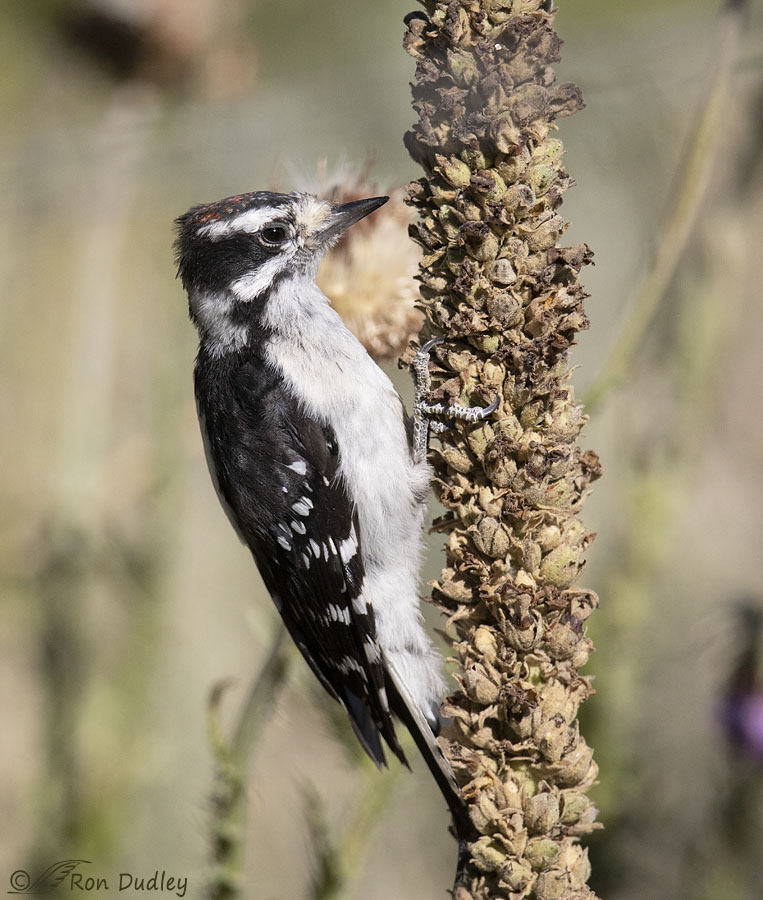 I thought mullein was an unusual perch for the species but I guess Downy Woodpeckers aren’t picky about where they find their ‘bugs’.