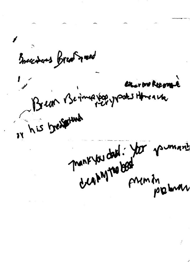 I saved one of her ‘answer sheets’ and found it again two days ago. The only words on it I can read with confidence are “Thank you dad”.