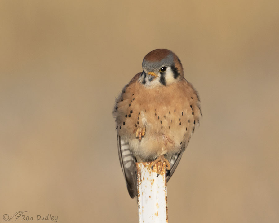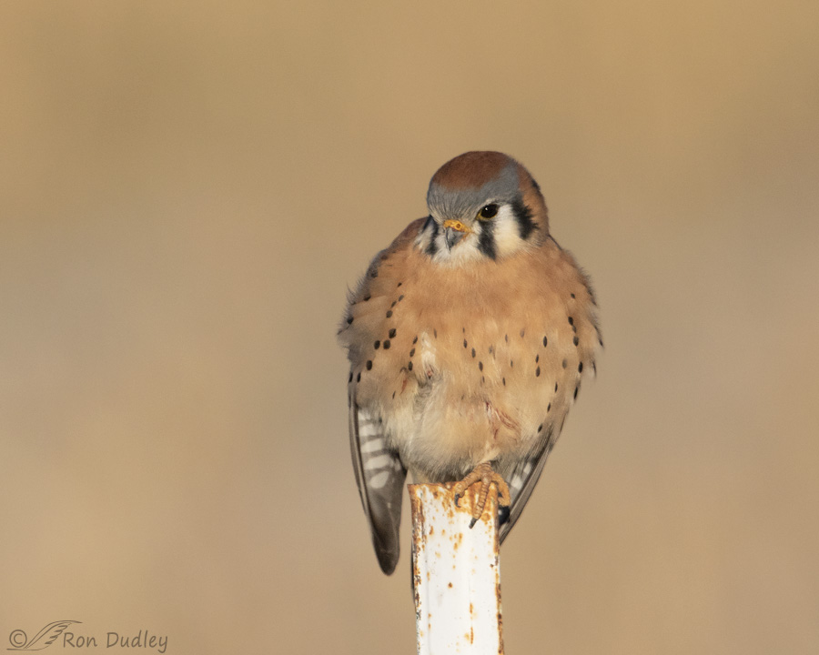 Lovely American Kestrel photos, Ron. I am always amazed when birds perch on uncomfortable looking materials, like cold metal tee-posts or barbed wire.