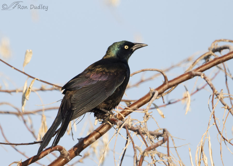 Congratulations on some lovely lifer shots. Really like the second shot with the slightly fanned wing and all the iridescence. The somewhat scraggly twigs echo the grack’s somewhat scraggly feathers.