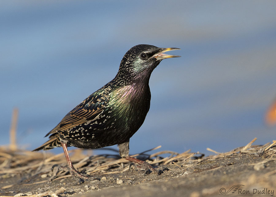 This species can generate many conflicting feelings and its side must have something to do with it. In good light, its plumage radiates a thousand lights while it can appear dark from another angle. And what about its sometimes hoarse and sometimes melodious song. The starling is the only bird I know of whose mandibles have more strength when opening than when closing. A trait that allows it to forage for food in a different way from other bird species. What beautiful photos once again of this unique species which enriches our avifauna! A real nice Christmas present, Ron.
