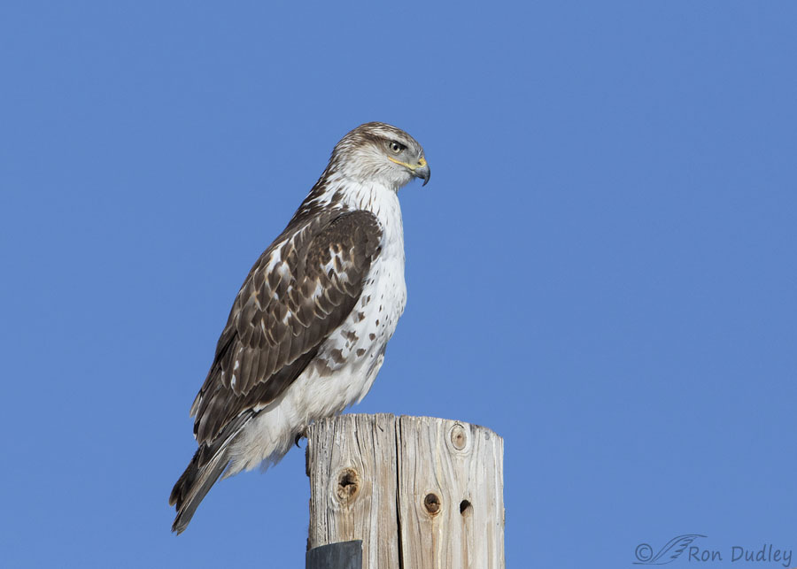 I usually don’t stop for raptors on utility poles but this was a Ferrug, the largest and most powerful buteo in North America, and there was a convenient pull-off spot off the road for my pickup so in hopes of getting takeoff and flight shots I made an exception.
