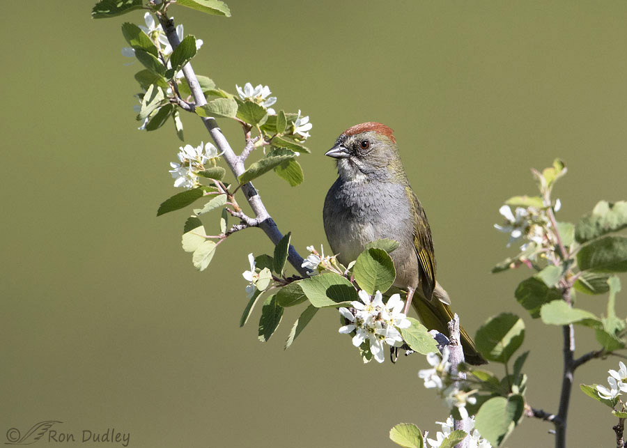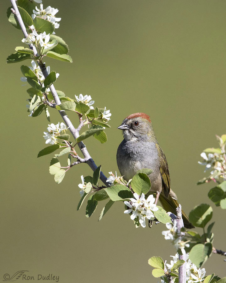 Near the end of May of 2018 I photographed this Green-tailed Towhee playing hide and seek with me on a flowering Serviceberry branch in a Wasatch Mountain valley. ‘He’ wasn’t particularly close so he’s fairly small in the frame but there are plenty of attractive elements in the photo to mostly fill the frame and I think the colorful (for a sparrow) bird tops the image off nicely.