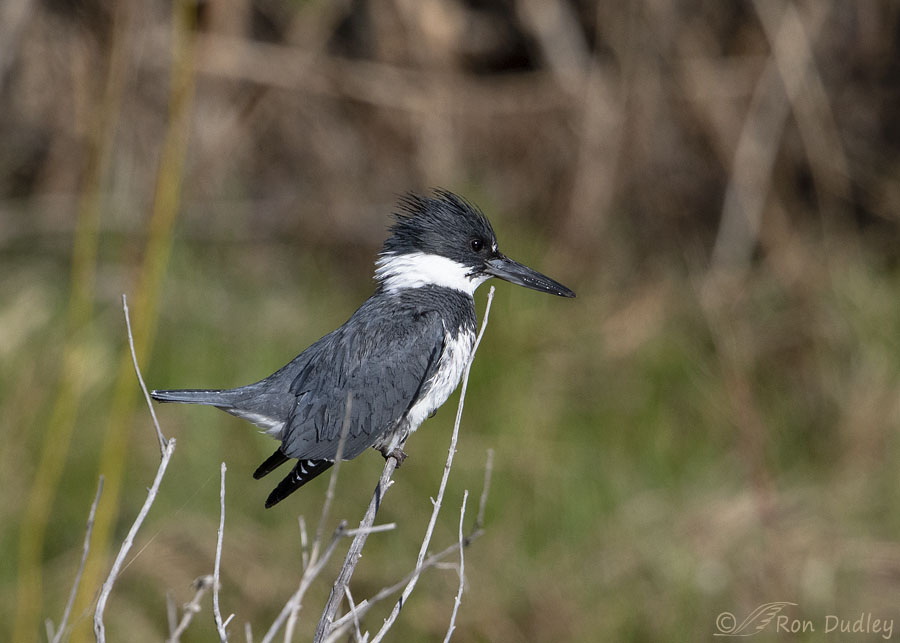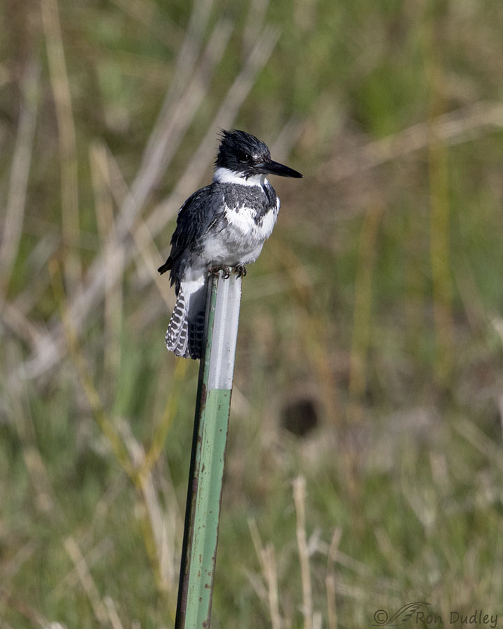 Kris is right. What a wonderful group of photos for understanding the markings and postures of male belted kingfishers! I’ve always wondered if there is a purpose for the white spots just in front of their eyes. Do you have any ideas? I can imagine an Indian legend about how the Great Creator put them there to give observant fish a warning that the kingfisher is coming, perhaps because the kingfisher did something after he was designed that he shouldn’t have.
