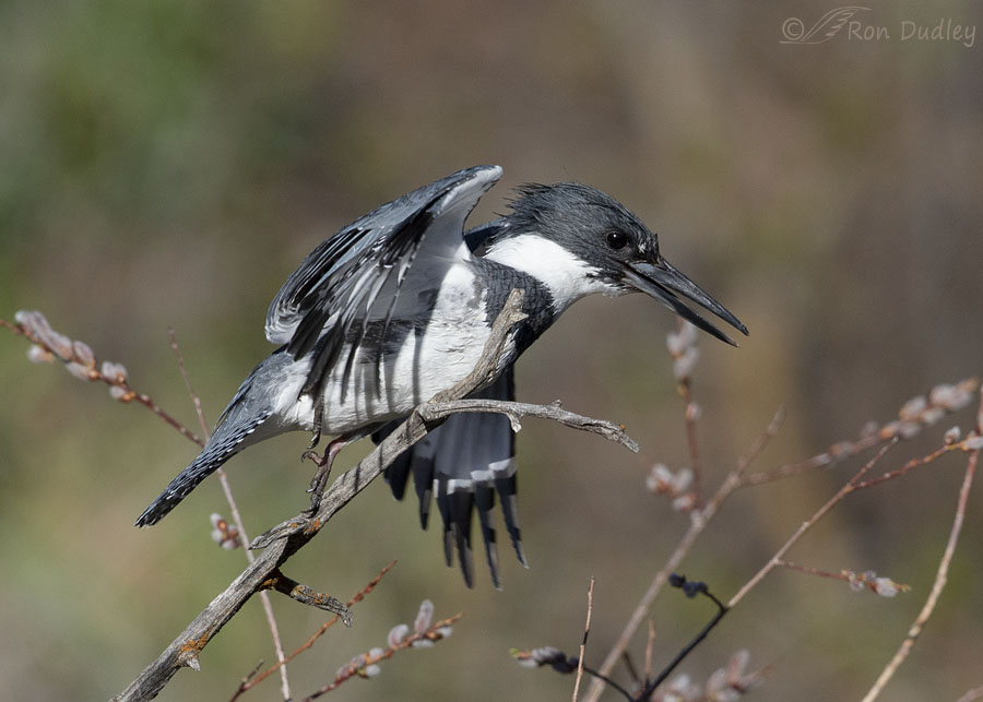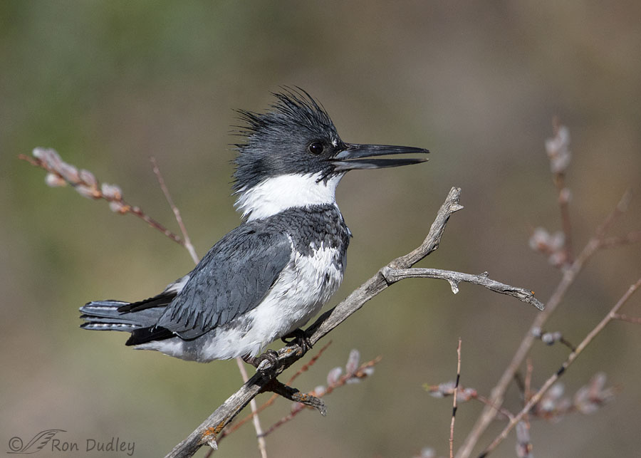 When he made his last attempt that I’ll include here he returned to the same close perch he used in photo #3. By now I’d moved my pickup a few feet to put the pussy willows in the background in a slightly more photogenic position in the frame.
