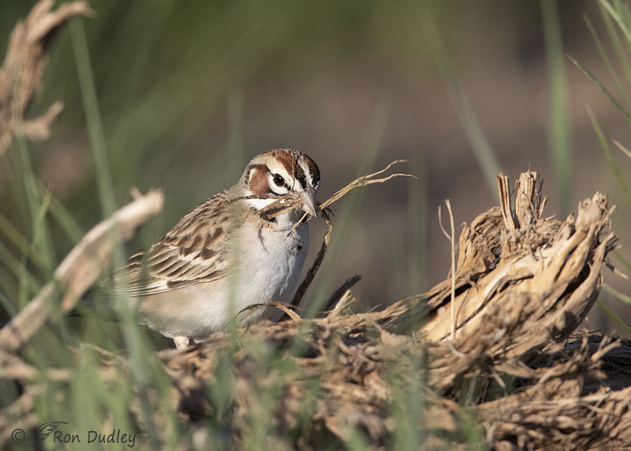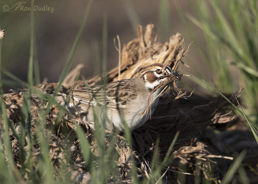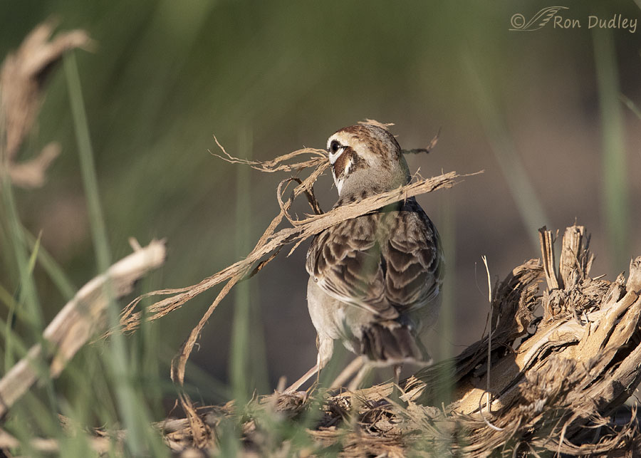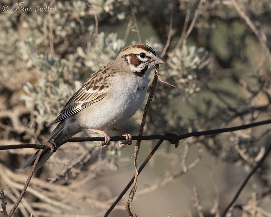 Three days ago I photographed a Lark Sparrow as she was gathering nesting material in the west desert. She was close but she was usually partially hidden by grasses in front of her so these photos are only meant to document her behavior.