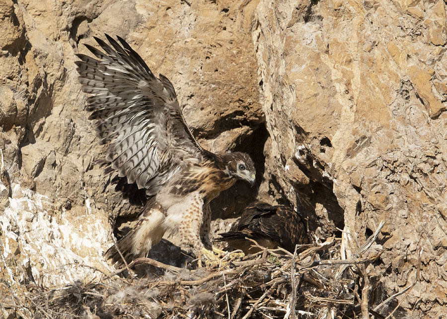 Two days ago I decided to check on their progress for the first time since this photo was taken. I was surprisingly tense and nervous when I got within a few miles of the nest location because many of these nests fail somewhere along the way. Storms blow nests out of their trees or cliffs, chicks starve for lack of available food, predators help themselves to defenseless young chicks while the adults are away – all manner of things can cause a nest to fail.