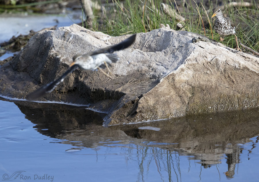 Note: In Spotted Sandpipers sexes are very similar with only slight differences so it’s possible that in this post I’ve referred to a male that was actually a female, or vice versa. The fact that females sometimes chase males makes such an error on my part even more likely.