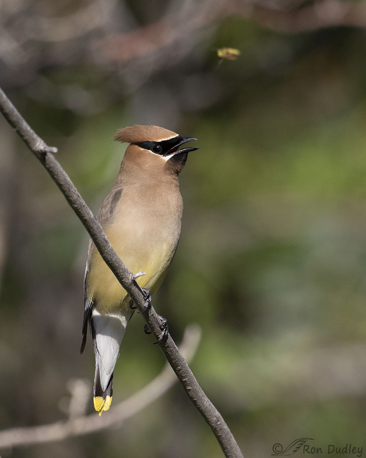 A Cedar Waxwing being annoyed by a bee. Yes, I wish the bee was sharper.