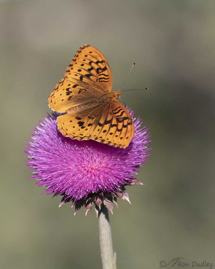 The butterfly on thistle is spectacular—I’m very fond of fritillaries, having raised and released quite a few Gulf Frits in the last couple of years. Pam’s Atlantis ID looks right to me, if only because of the very decorative wings. Sorry to say this has been a disappointing year for both Gulfs and Monarchs here.