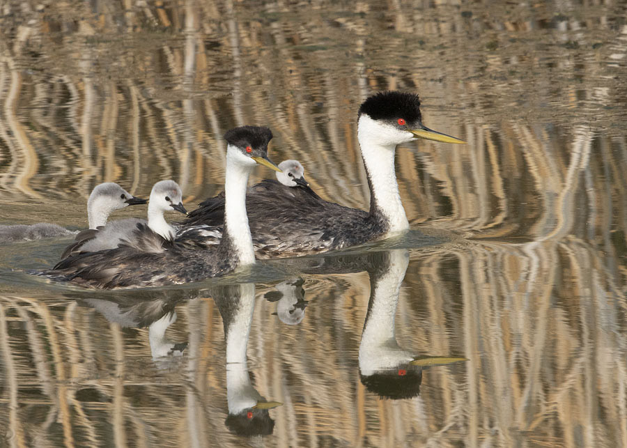 This is one of the very few times I’ve ever been able to get three or more Western Grebe chicks and both of their parents in the same photo and get them all sharp. The whole fam damily.