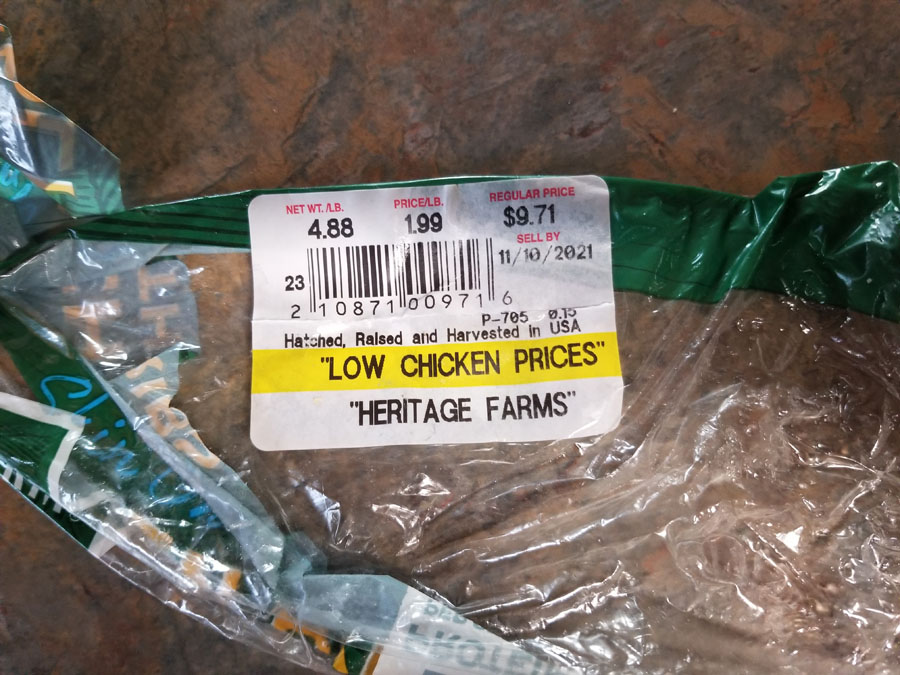 My common sense tells me this will be a regular thing to watch out for because packaging [ already an environmental problem.] makes it easy to manipulate price to consumers. Consumer Reports has run articles about the amount of water injected into the chickens and how the industry tries to wrangle how to skirt reporting accurate injection rates, etc. I hope you forwarded your complaint to the Heritage Farm too. We rarely buy meat processed for stores because of the speeding up of the assembly lines much to the detriment of the workers-and chickens. If you can’t use my comment out loud its ok- just FYI. Be well.