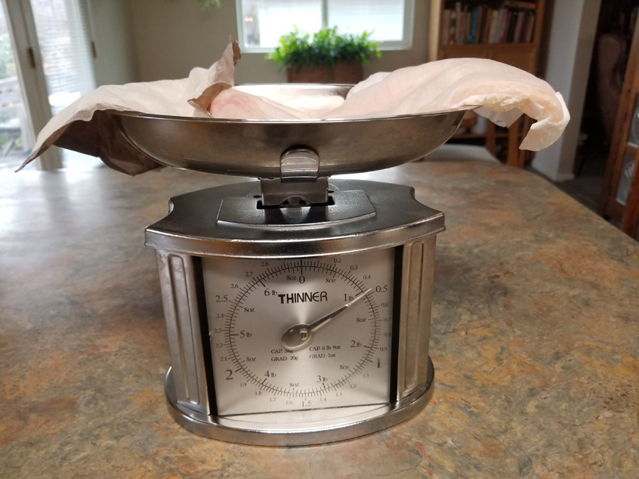 My mind went a little bit of a different direction . . . I’m curious if you had weighed the actual chicken to see if you in fact received 4.88# of chicken . . .