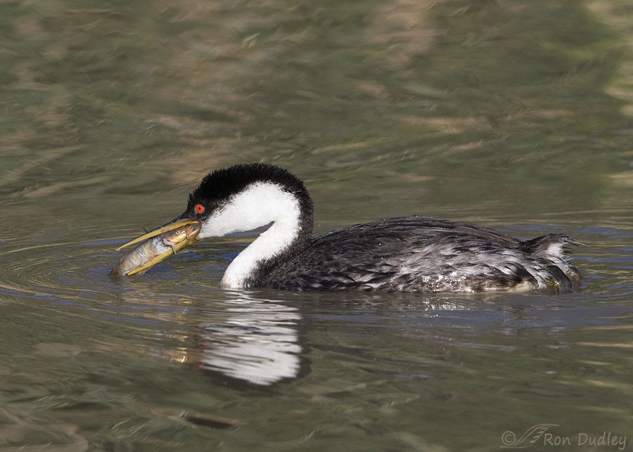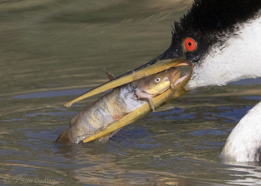 The eternal struggle between predator and prey. This is a fabulous shot, Ron! I’m hoping that the grebe was able to get some breakfast — even if it isn’t this little catfish.