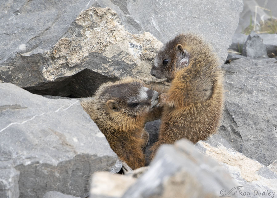 There was a Hoary Marmot that could occasionally be seen sunning on a rock by the trailside on one of the hikes in the North Cascades. Wasn’t fazed by people trekking by. Like these Yellow-bellied pups, adults are big but still cute as the dickens (whatever dickens are).