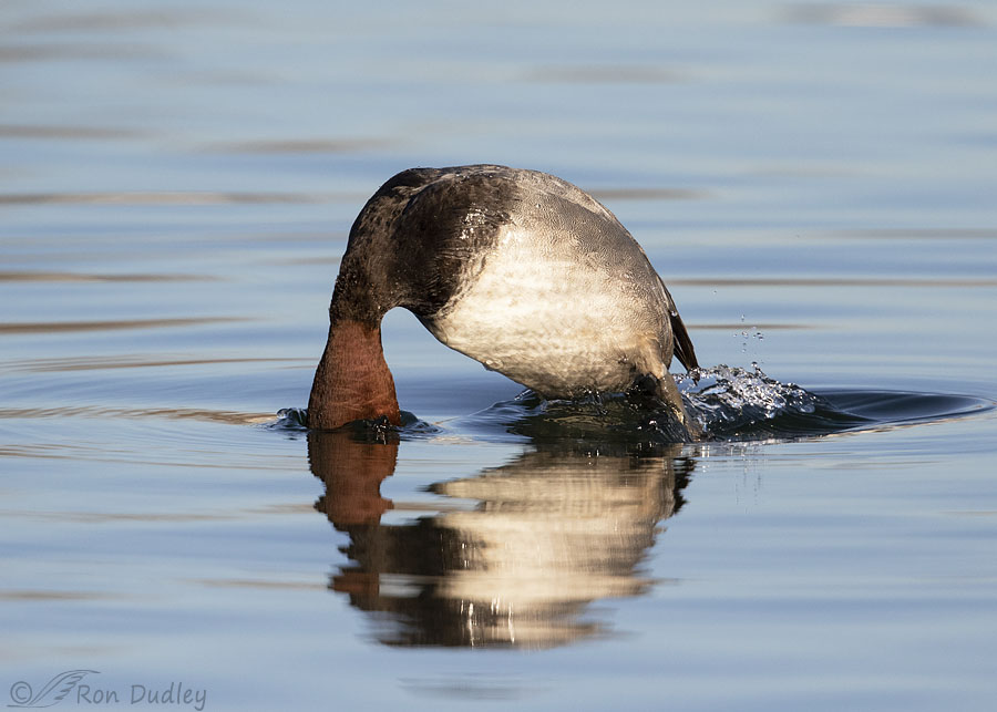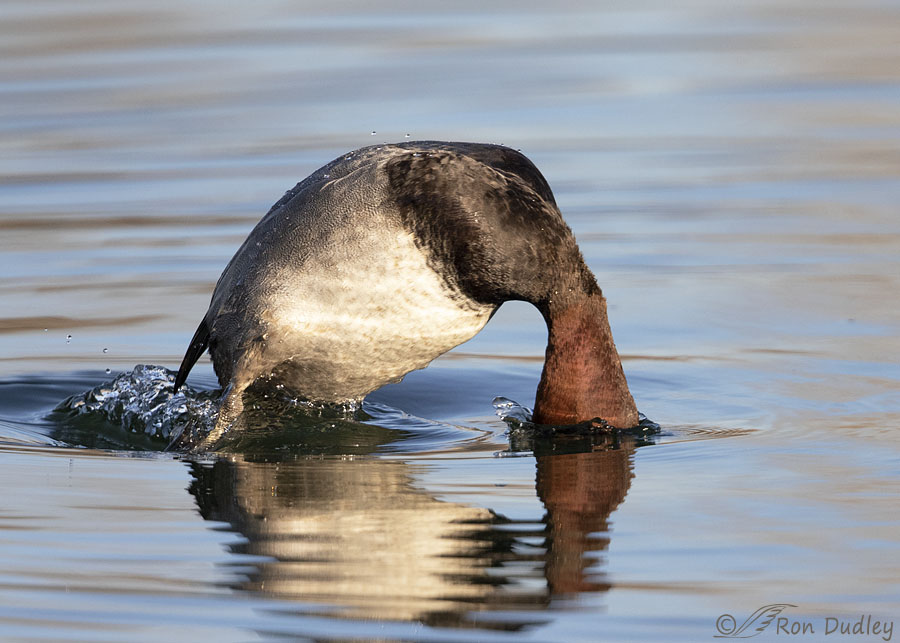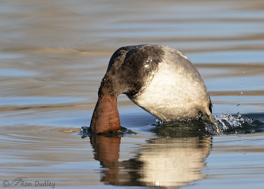 One of my goals that morning was to catch a Redhead in a dive at the exact moment when its eye was just above the water’s surface.