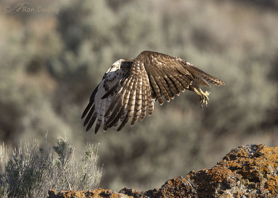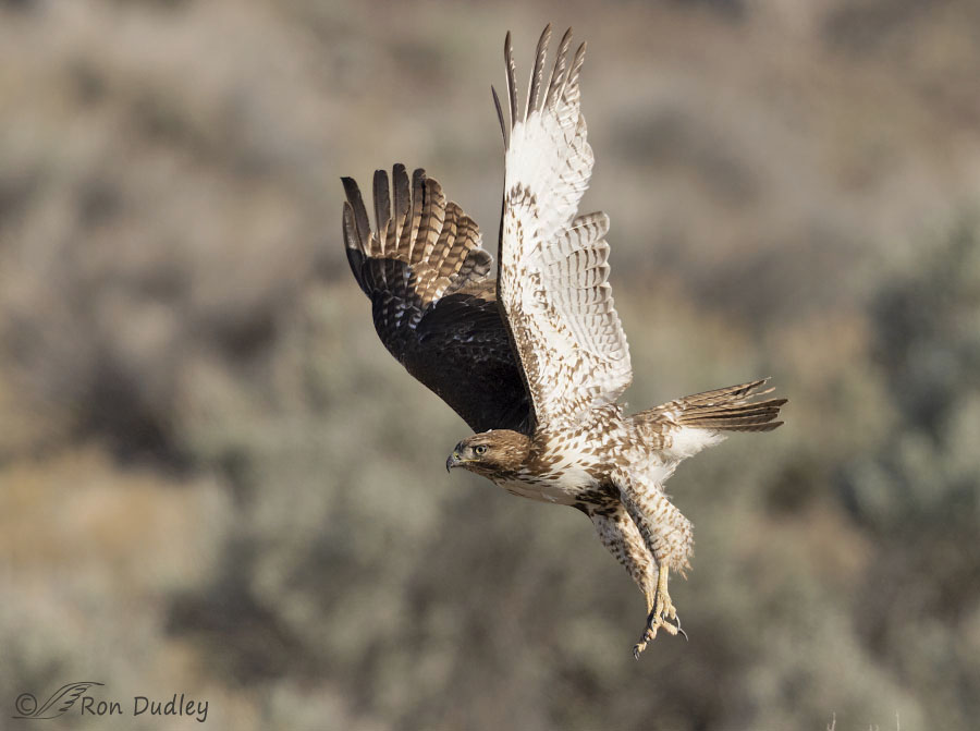 I like his flight posture, we have a clear view of his unshaded face, he’s plenty sharp enough and the sagebrush background appeals to me. The exposure on his near-whites and shaded right wing was a difficult one but a little work with the lights and darks during processing helped to mitigate most of those issues.